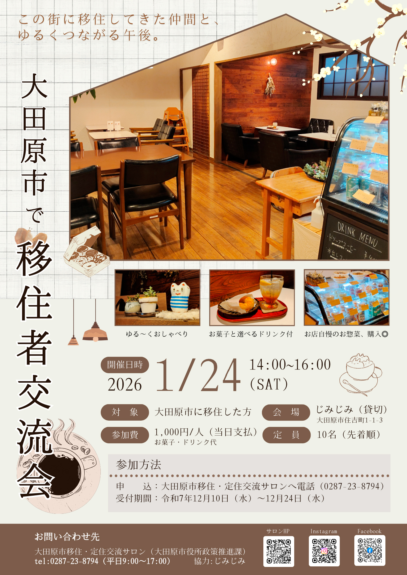 申込方法:大田原市移住・定住交流サロンへ電話申込0287-23-8794(平日9時~17時)